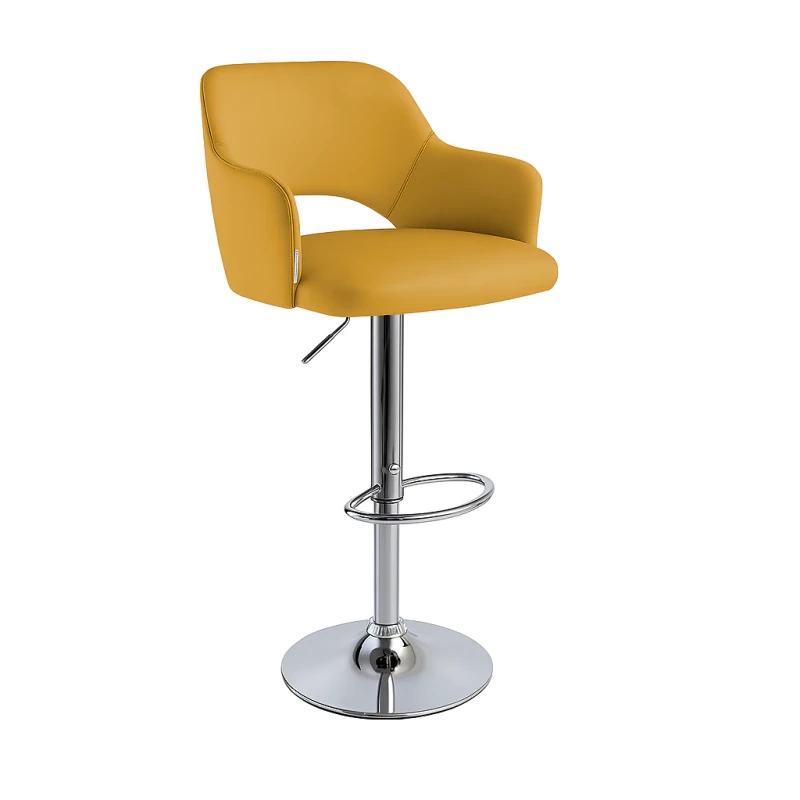 Hoker krzesło barowe obrotowe LENA z regulacją wysokości, oparciem i podłokietnikami - chromowana podstawa, tapicerka velvet