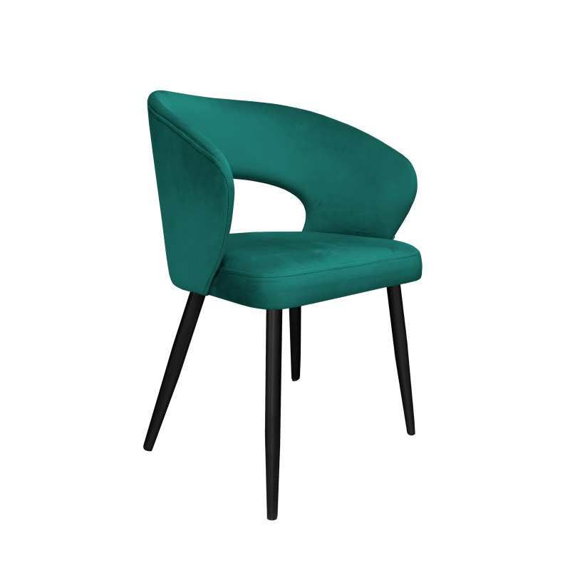 Wyróżnia je nowoczesna, zaokrąglona forma z subtelnym wycięciem w oparciu, które zapewnia komfortowe i ergonomiczne oparcie nawet podczas długiego siedzenia. Tapicerowane aksamitną tkaniną w głębokim odcieniu. Krzesło zachwyca elegancją, miękkim połyskiem i przyjemną w dotyku strukturą. Siedzisko wypełnione miękką pianką gwarantuje długotrwały komfort.