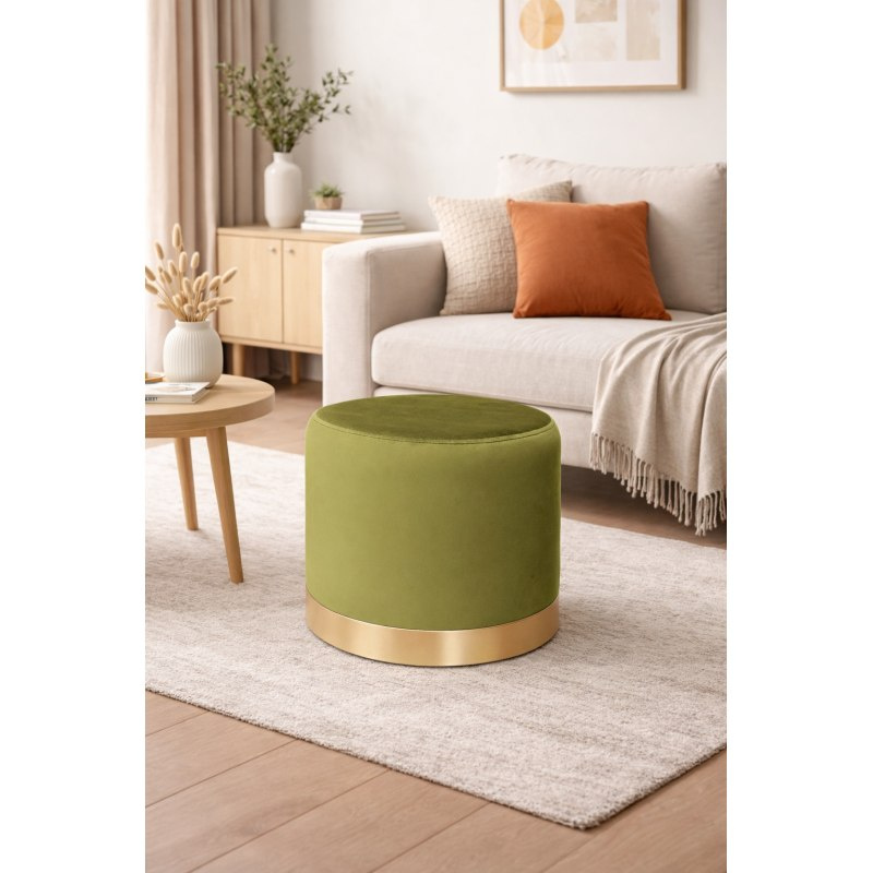 Stabilna metalowa podstawa zapewnia trwałość i bezpieczeństwo użytkowania, a jednocześnie podkreśla nowoczesny charakter mebla. Cylindryczny kształt sprawia, że pufa świetnie komponuje się z innymi meblami tapicerowanymi.