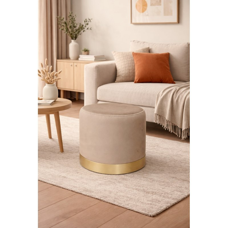 Stabilna metalowa podstawa zapewnia trwałość i bezpieczeństwo użytkowania, a jednocześnie podkreśla nowoczesny charakter mebla. Cylindryczny kształt sprawia, że pufa świetnie komponuje się z innymi meblami tapicerowanymi.